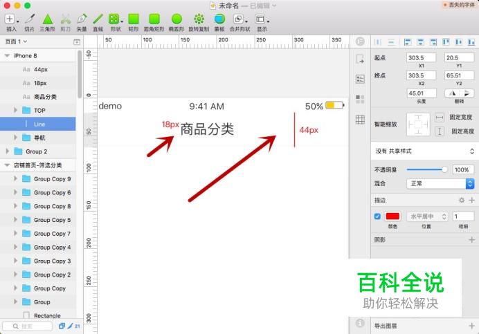 一般列表页面都是有一个返回的,我们可以利用“矩形”工具来绘制一个,你也可以在网上找png格式的透明图标直接使用。