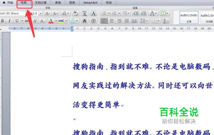 打开word, 并打开一份文档。点击菜单上的‘布局’