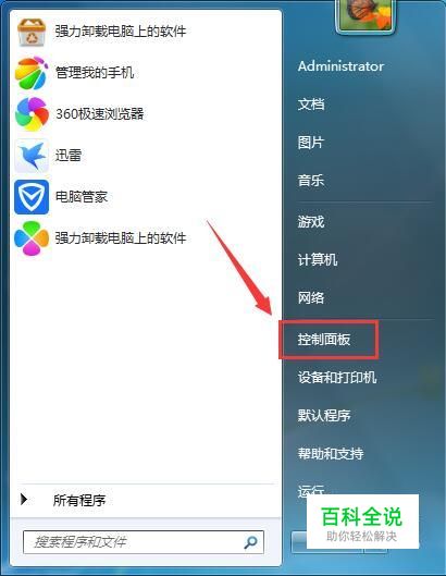 点击开始选项在,在其子级菜单里找到控制面板选项,如图所示: