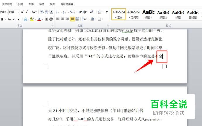 打开需要插入页码的word文档,在需要插入页码前一页的末尾点击鼠标左键,选中该页,如图所示。