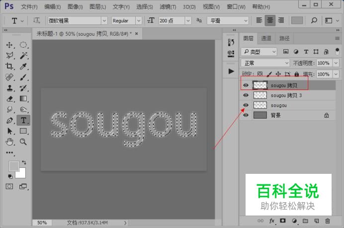 复制文字填充sougou两次;然后,合并图层sougou 拷贝 2和sougou 拷贝 3.