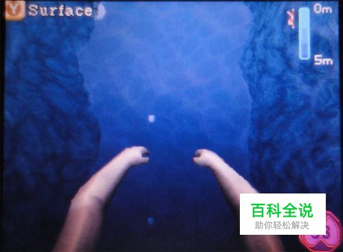 按A键进入水中。潜水应同时按住L和R键1至2秒(这样会潜得比较深),然后放开,循环往复,直到海底。