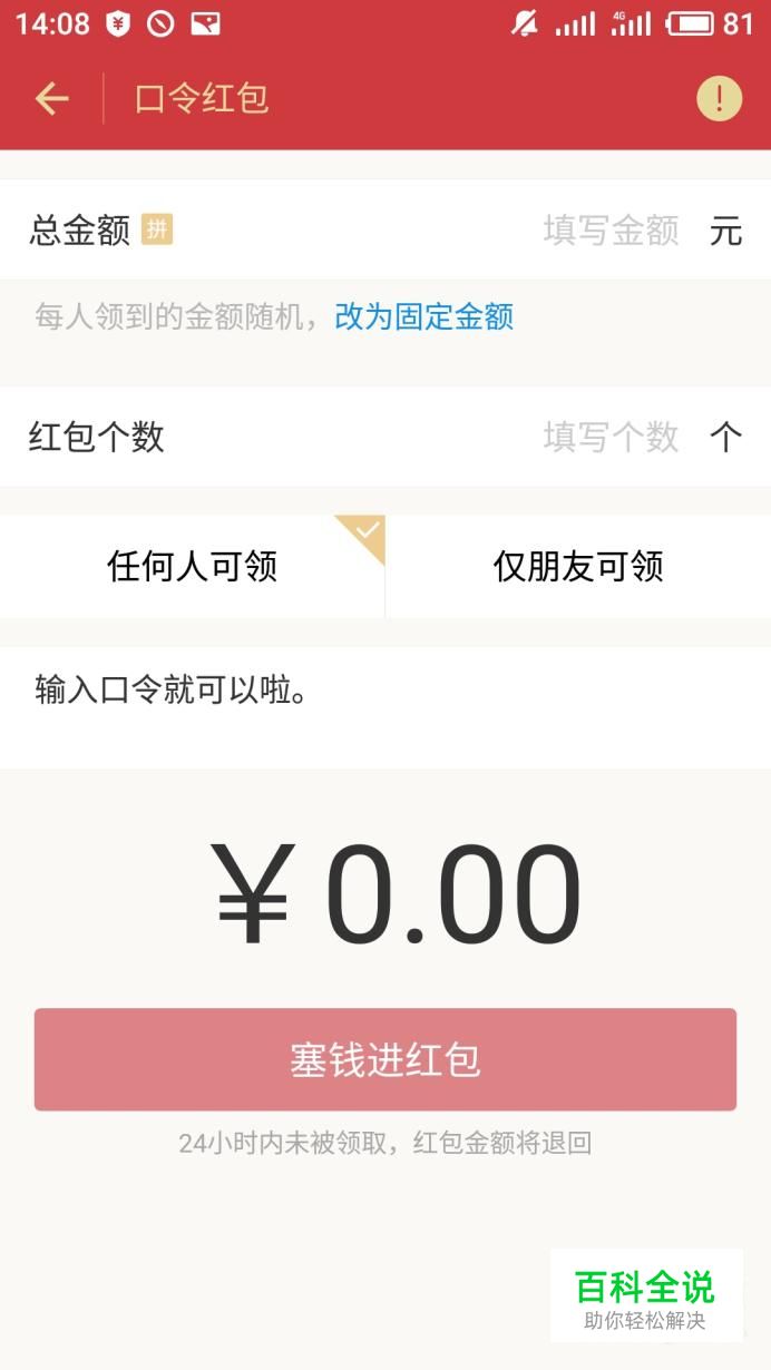 点击打开红包以后,选择口领红包,然后在口令框内输入口令就可以发送了。