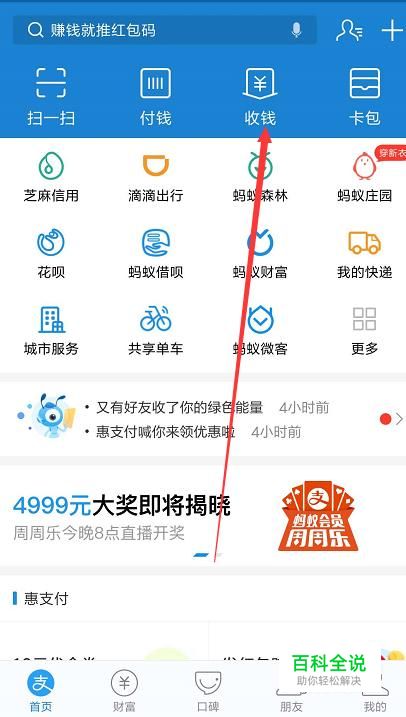 打开支付宝APP,进入收钱页面,记住不要进入付钱页面,由于有些人设置小金额免密支付,所以存在盗刷可能;