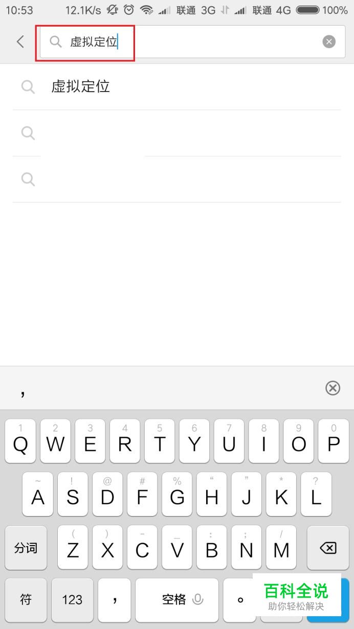 首先,请大家打开自己手机系统中自带的应用商店,点击搜索框输入“虚拟定位”关键字。