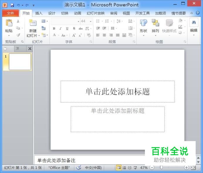 我们在桌面上双击PPT的我快捷图标,将PPT这款软件打开,进入到PPT的操作界面如图所示: