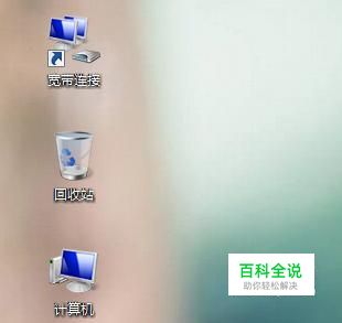 首先我们要有一台电脑,然后电脑上就有一些图标。排列如图(如下图有宽带连接、回收站以及计算机这三个图标)