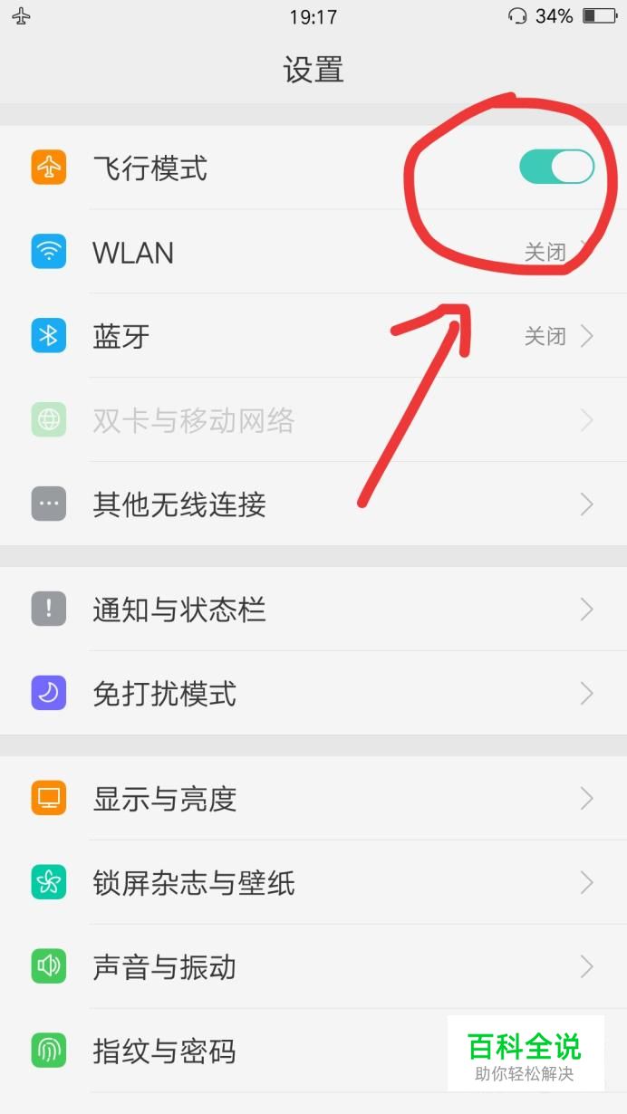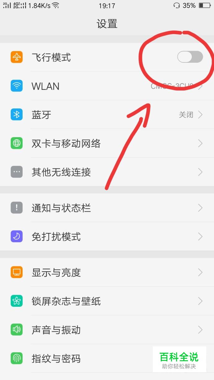 或下拉通知栏,点开飞行模式,再点击关闭飞行模式。