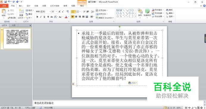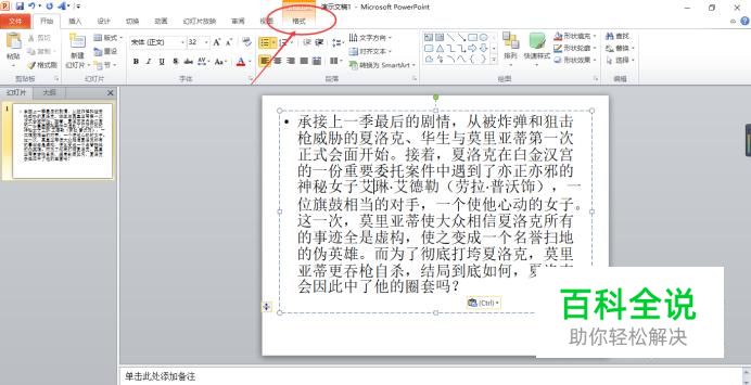 打开需要编辑的ppt,选中段落中的文字。