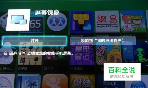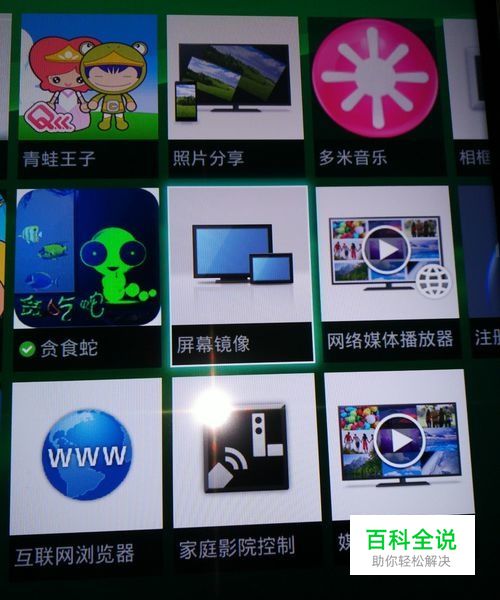 打开电视,使用遥控器打开应用程序,找到屏幕镜像