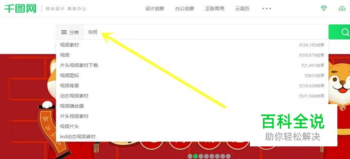 首先打开搜狗浏览器,搜索 千图网 ,然后进入千图网首页,在搜索框中输入 视频 进行搜索