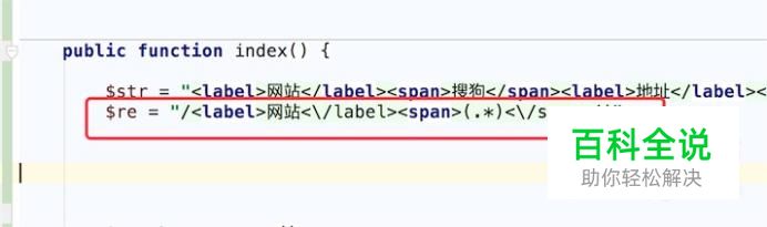 我们先定义一个字符串,如图,假设要从这段字符串里,匹配找出网站的名字“搜狗”