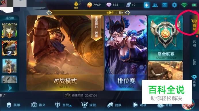 首先进入王者荣耀游戏,进入游戏界面后,如下图,点击右上角‘商城’
