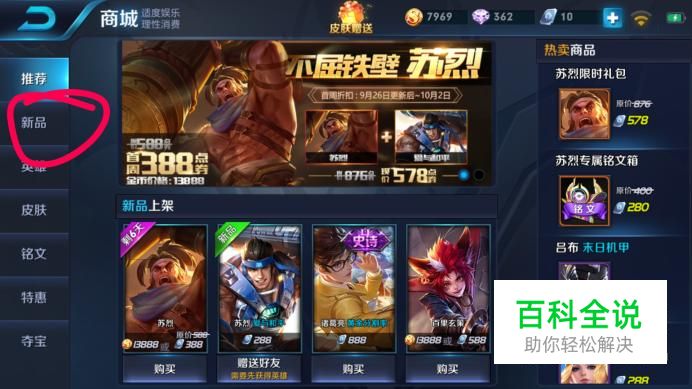 进入新品界面后,如下图,再点击“皮肤”