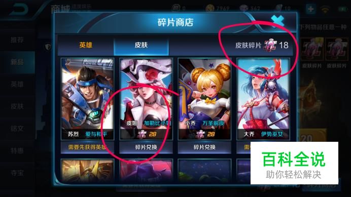 进入“皮肤”兑换商店之后,如下图,再点击右下角的“碎片商店”