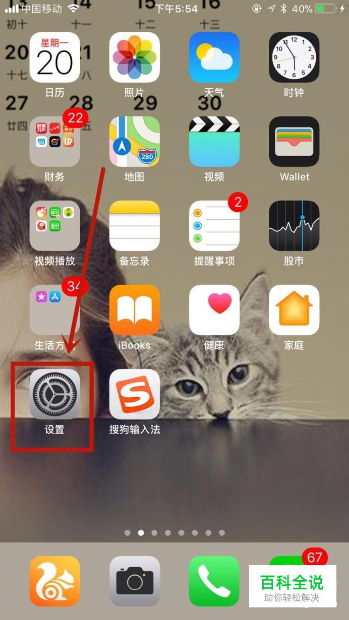 首先在手机桌面上找到“设置”图标并点击它,如下图所示。