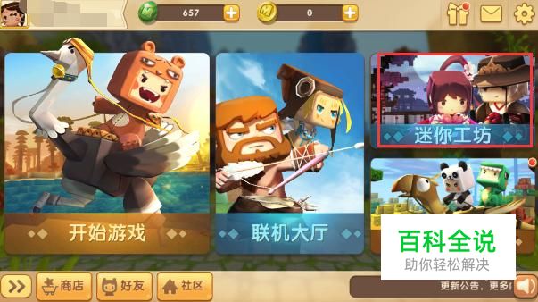 在迷你世界游戏中,玩家想要使用材质包的话,首先就需要获得材质包。那怎么获得材质包呢?进入游戏的主页后点击迷你工坊。