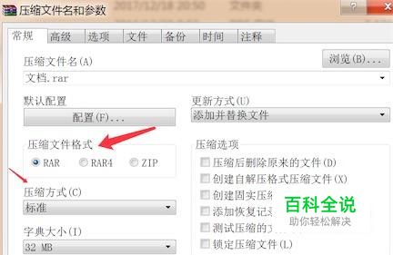 打开了压缩窗口,我们可以选择压缩的格式,也可以点击选择方式。