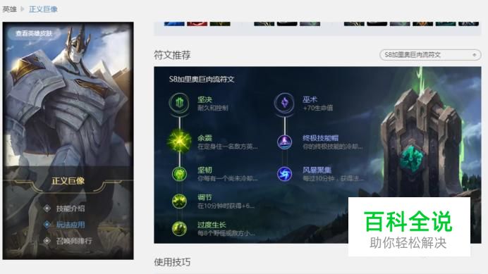 副符文第三个加点:风暴聚集,风暴聚集的符文效果使加里奥越到后期越强,使其能更有成长性。