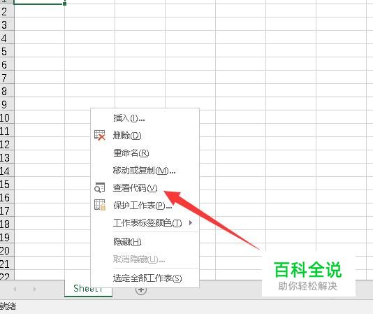 然后打开这个新建的excel文件,右键点击sheet1选择查看代码。