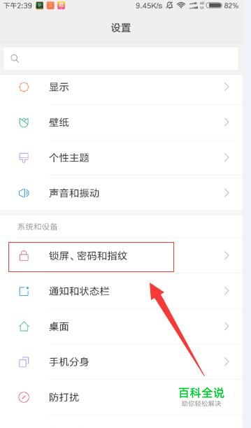 在设置菜单里往下拉找到锁屏,密码和指纹。