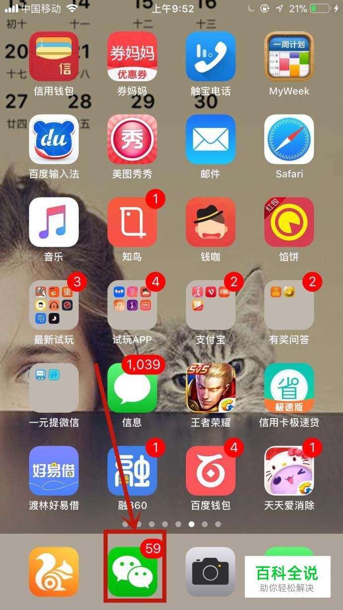 首先在手机桌面上找到“微信”APP,并点击登入,如下图所示。