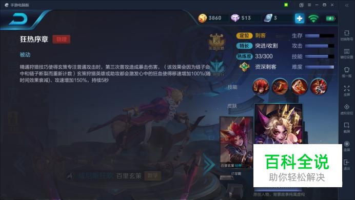 玄策的被动技能是第三下普攻都会造成暴击伤害。舷侧狩猎英雄或助攻都会激发心中的狂血并获得移速的加成和攻速加成,并且持续五秒。玄策这个被动技能的存在,让他能够很好的收割。