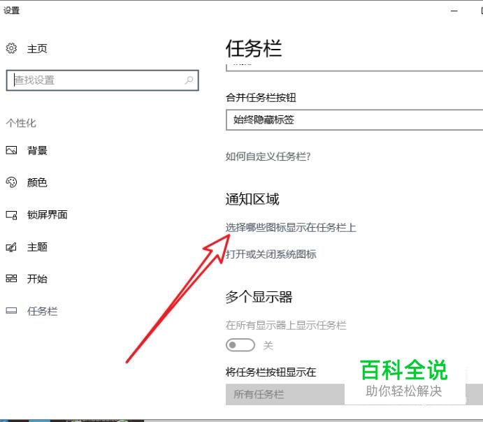 鼠标向下滚动,找到并点击 选择哪些图标显示在任务栏上。