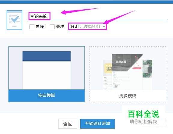 接着我们开始创建表单,填写表单名字,以及进行分组,如图。