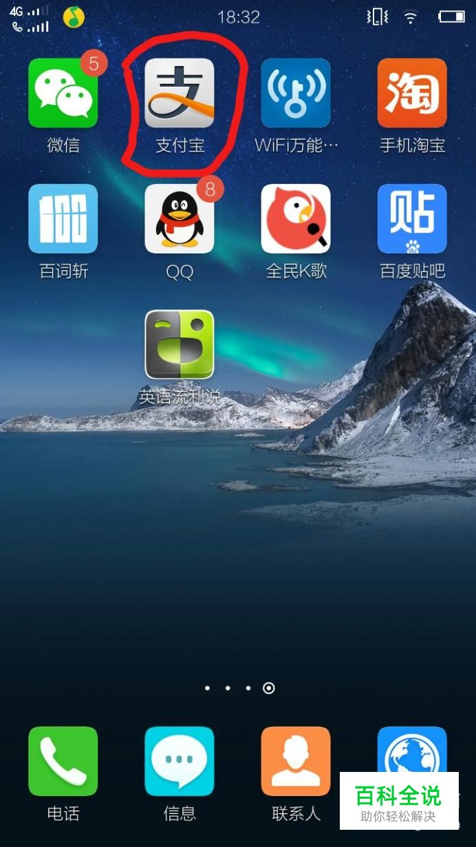 首先,在手机界面上找到“支付宝”软件,点击进入: