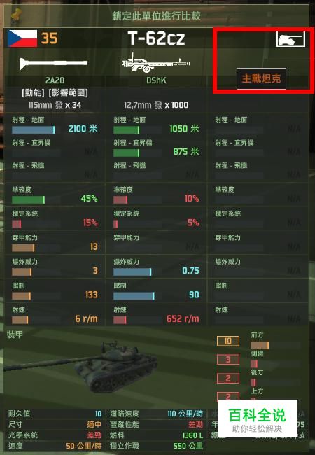 由此可见,T-62cz作为一辆中坦,在地面上拥有不错的机动性和反装甲能力。使用T-62cz时,你需要合理布置它们的位置,避免敌方高爆火力的同时,对敌方装甲单位进行骚扰和打击。
