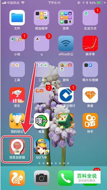 首先在我们的手机桌面找到“信息加密器”并点击它,如下图所示。
