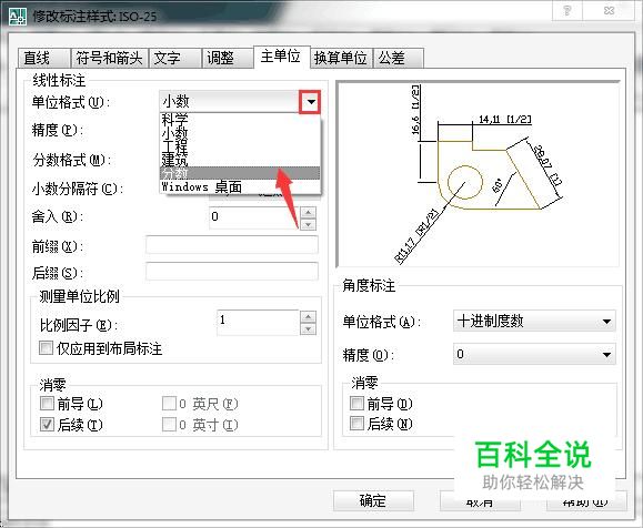 CAD中尺寸标注的主单位格式如何更换为分数?
