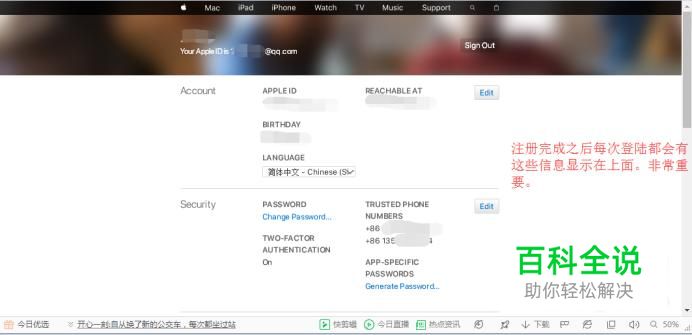 基本信息填写完成后一定记住需要给你的apple ID申请二次认证,因为现在网络盗取苹果账号的太多,如果让人盗号那么你的手机可能会变砖哦然后因为解锁问题会造成你浪费不少时间和金钱。