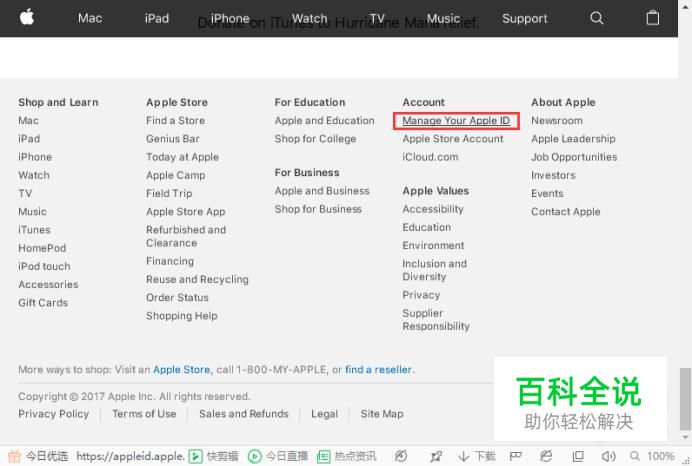鼠标滚轮滚到最下面,点击“manage your apple id”