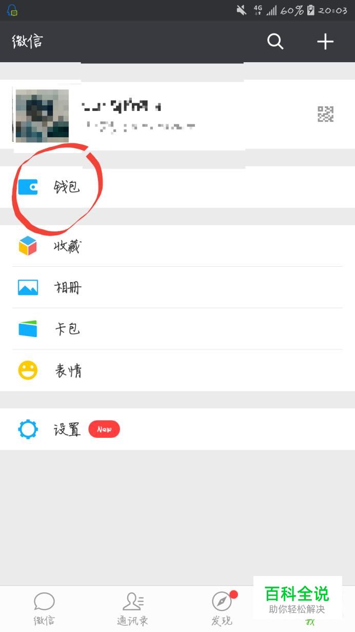 首先,我们用手机打开微信,在微信首页上面,点击“我”这一栏,在这里找到“钱包”。