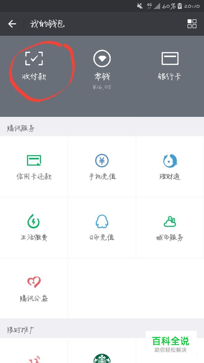 然后找到左上角的"收付款"一栏,点击打开。