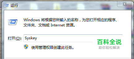 设置启动密码 依次选择“开始→运行”,在“运行”对话框中输入“Syskey”命令。