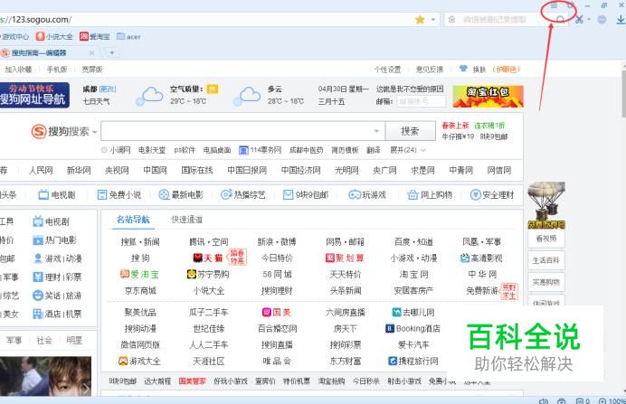 我们以搜狗浏览器为例子,其他的浏览器都大同小异,打开搜狗浏览器,点击左上角的菜单栏。