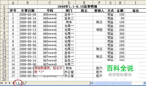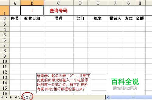 第一步,准备数据表 一共需要两个工作表,有原始数据的工作表起名为“1”,检索用的表起名为“2”。