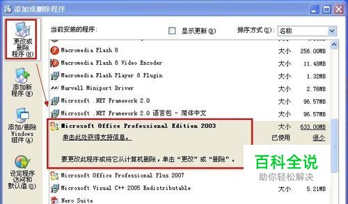 一、安装公式编辑器 进入控制面板中的“添加或删除程序“,在窗口中找到已经安装的Office2003条目,并点击条目右边的“更改”按钮。