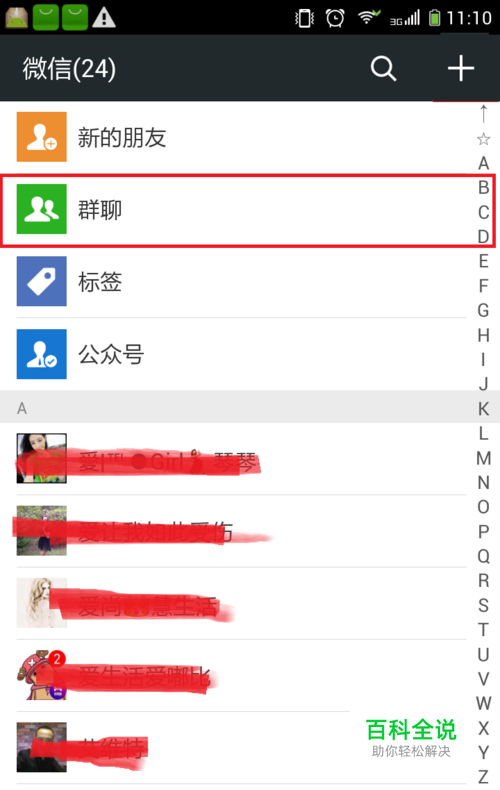 进入微信,点击下方“通讯录“,在通讯录选择”“群聊”,界面如图所示。