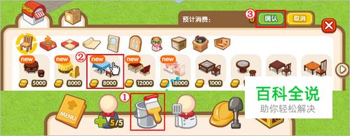 拖(点):进入QQ餐厅,点击页面下方的“装修”,在商店里选择您喜欢的装扮,然后拖放到餐厅中合适的位置(大小要合适),最后点击“确认”即可。也可以先点击一下您喜欢的装扮,然后在餐厅场景位置(大小要合适)再点击一下,放置成功。如图: