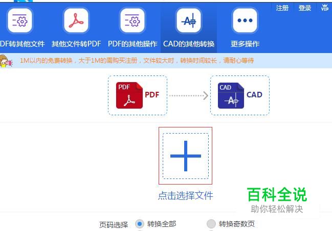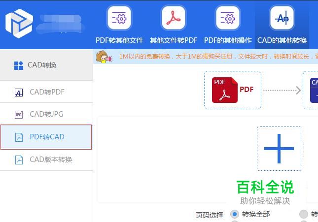 打开已经安装好的转换工具后,点击CAD的其他转换下的CAD转换下的PDF转CAD功能