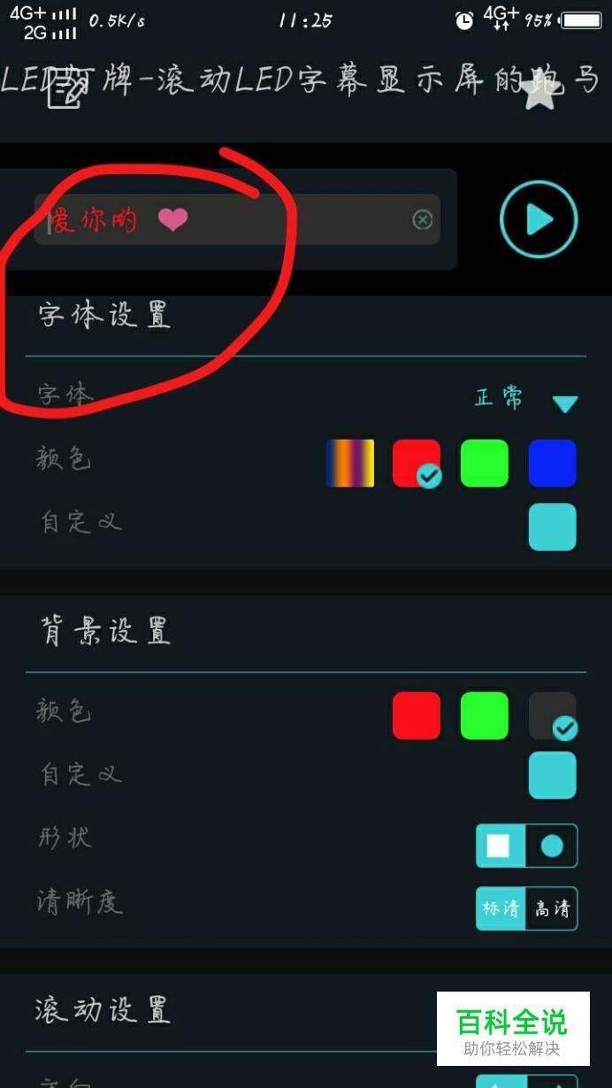 另外,在下面的一次选项中可以设置字的颜色,大小,背景,滚动速度和效果等等。