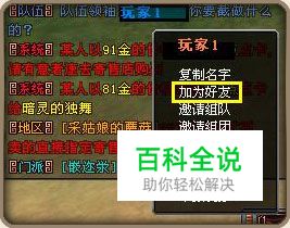 用鼠标右键点击你所要结交的对象,这样在游戏界面的右上部分就会出现一个人物的图标,然后用右键点击图标中的人物头像,在下面就会出现一些选项。然后选择“加为好友”,这样就可以向对方申请好友。如果在60秒内获得对方的允许,呵呵,恭喜你们成为好友,如果在60秒内对方对您不理不睬,那样就申请好友失败。