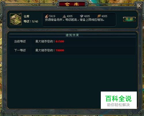 足够大的仓库 各种物资多了,总要有地方存放,所以仓库的等级显得尤为重要。高等级的建筑不但可以提供更多的资源存储上限,也为其他建筑升级提供了保障,是我们第二要考虑的问题。