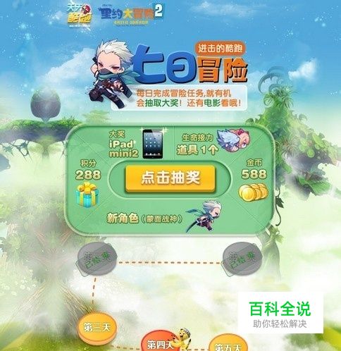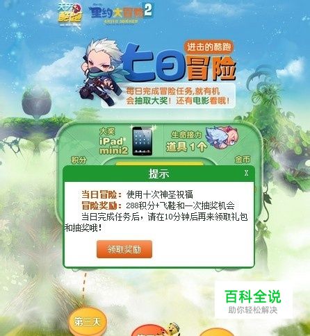 天酷跑里约大冒险2推出“进击的酷跑,七日冒险”活动,今天4月15日为活动第二天,天天酷跑七日冒险活动第四天过关条件及奖励介绍: 第四天过关条件: 使用十次神圣祝福 冒险奖励: 288积分+飞鞋和一次抽奖机会。 完成任务后,请在10分钟后活动页面领取礼包和抽奖。
