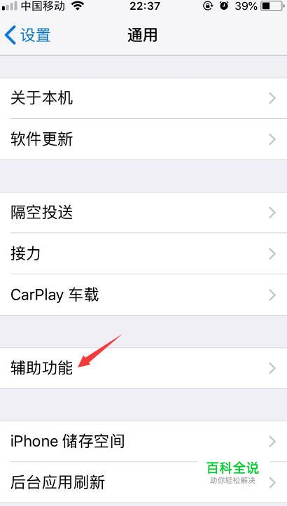 进入通用后一直往下拉,知道看到辅助功能的入口。