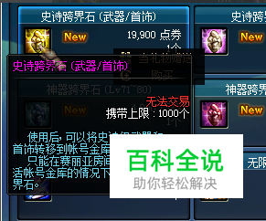 首先来了解下什么是dnf跨界石?dnf跨界石可以将自己帐号的史诗神器装备移动到帐号公用仓库,转移一件史诗装备消耗一个跨界石;如下图所示: